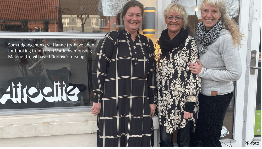 Hanne Thuesen og Malene Wonsbek har pr. 1. januar 2023 indgået et klinikfællesskab på 1. sal af frisørsalon Afrodite på Fogtmanns Plads 9.
